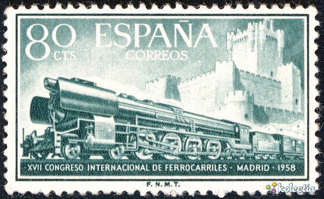 Sellos Spain 1958 XXVII International Railroad Meeting 80 CTS Verde Edifil...