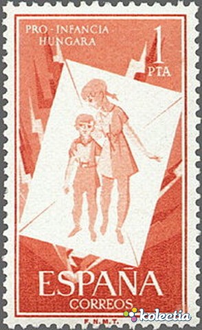 Sellos Spain 1956 Pro Hungarian Children 1 PTA Rojo Edifil 1204
