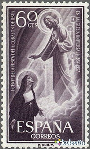 Stamps Spain 1957 Sacred Heart Of Jesus 60 CTS Blue Edifil 1207