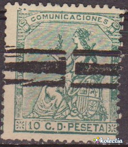 Sellos Spain 1873 Alegorías 10 CTS Verde Edifil 133