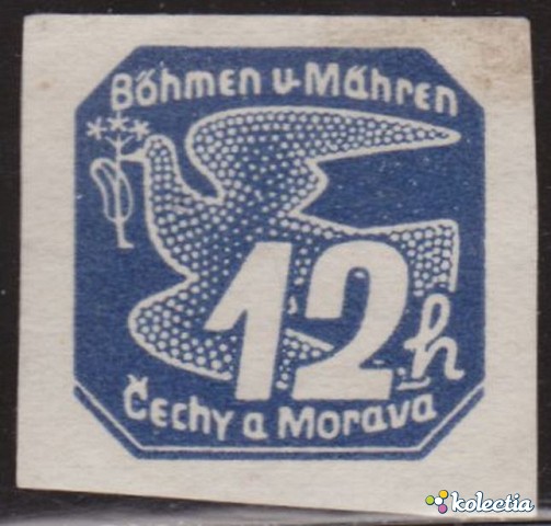 Sellos Czech Republic 1939 Fauna 12 H Azul Scott P6
