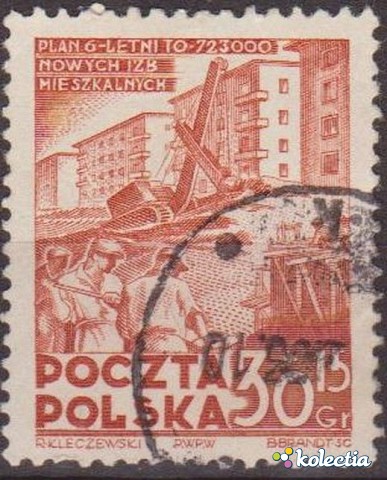Stamps Poland 1951 Construction 30+15 GR Brown Scott 529
