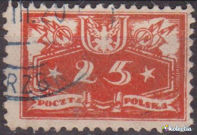 Stamps Poland 1920 Coat of Arms 25 GR Green Scott O5