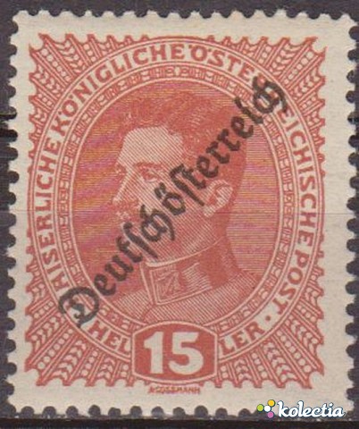 Sellos Austria 1919 Personajes 15 H Rojo Scott 186