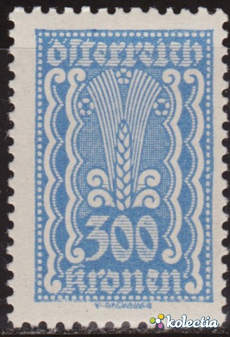 Sellos Austria 1922 Símbolos 300 K Azul Scott 275