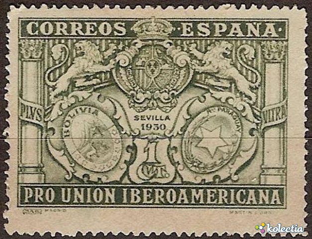 Sellos Spain 1930 Pro Unión Iberoamericana 1 CTS Verde Edifil 566