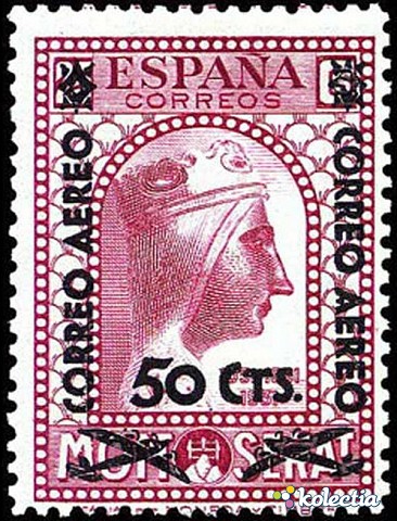 Stamps Spain 1938 Montserrat 50C S 25C Red Edifil 782
