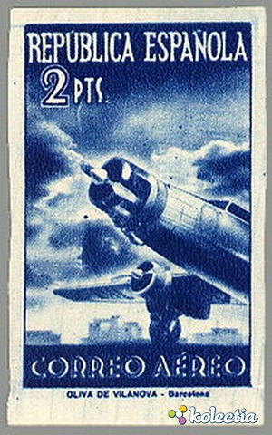 Stamps Spain 1939 Airplane 2 Ptas Blue Edifil NE 39