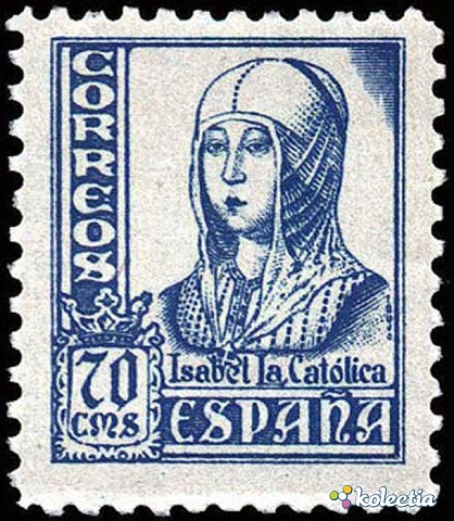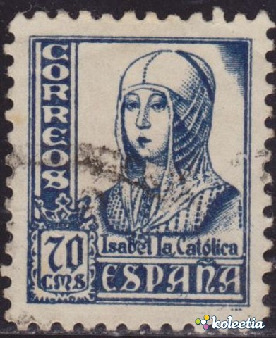 Sellos Spain 1937 Isabel La Catolica 70 CTS Azul Edifil 827