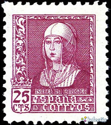 Stamps Spain 1938 Isabella The Catholic 25 CTS Carmin Lila Edifil 856