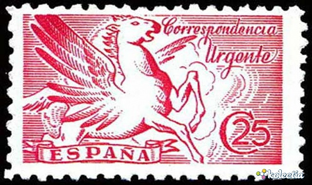 Sellos Spain 1942 Pegaso 25 CTS Rosa Edifil 952