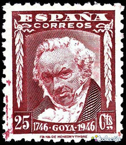Stamps Spain 1946 Goya 25 CTS Carmin Lila Edifil 1005