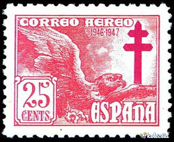 Sellos Spain 1946 Pro Tuberculosos 25 CTS Rojo Edifil 1010
