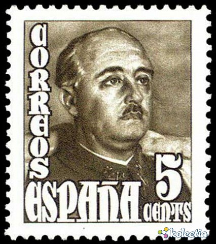 Stamps Spain 1948 Franco 5 CTS Brown Edifil 1020