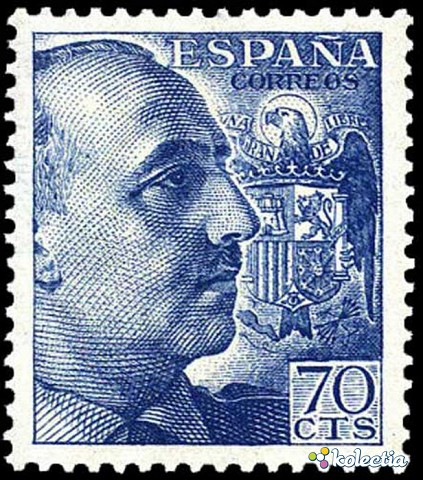 Sellos Spain 1949 General Franco 70 CTS Azul Edifil 1055