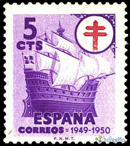Sellos Spain 1949 Pro Tuberculosos 5 CTS Violeta Edifil 1066