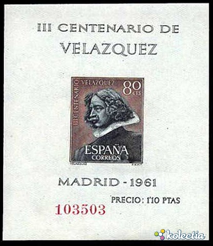 Sellos Spain 1961 Velazquez 80 CTS Azul grisaceo y Castaño Edifil 1344