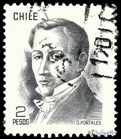 Sellos Chile 1975 Diego Portales 2 Pesos Blanco y Negro