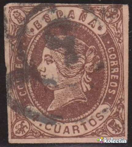Sellos Spain 1860 Isabel II 4 Cu. Castaño Edifil 58
