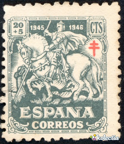Stamps Spain 1945 Pro Tuberculous 20+5 CTS Green Edifil 994