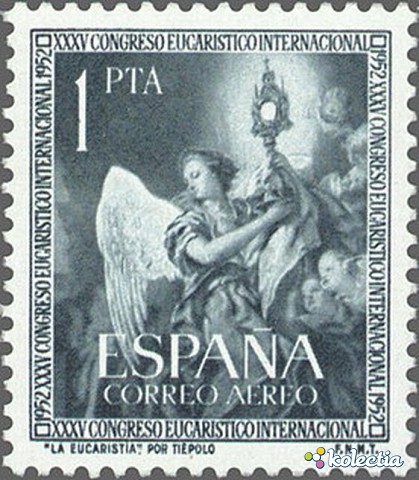 Sellos Spain 1952 Eucharistic Congress 1 PTA Verde Oscuro Edifil 1117