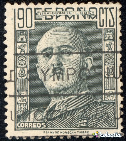 Sellos Spain 1946 General Franco 90 CTS Verde Edifil 1000